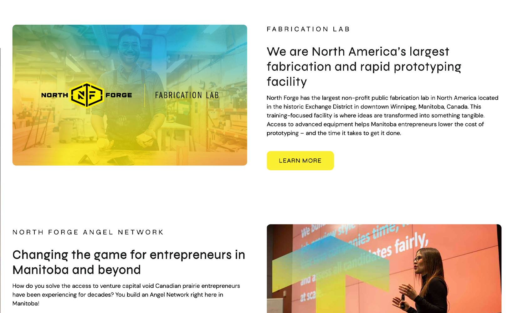 NorthForge is a Technology Incubator located in Manitoba, Canada. They have several programs designed to help startup, technology-based companies navigate the difficult world of going from Idea to Market Fit to Scale. North Forge works with over 325 startup companies and their founders at every stage of the startup lifecycle.